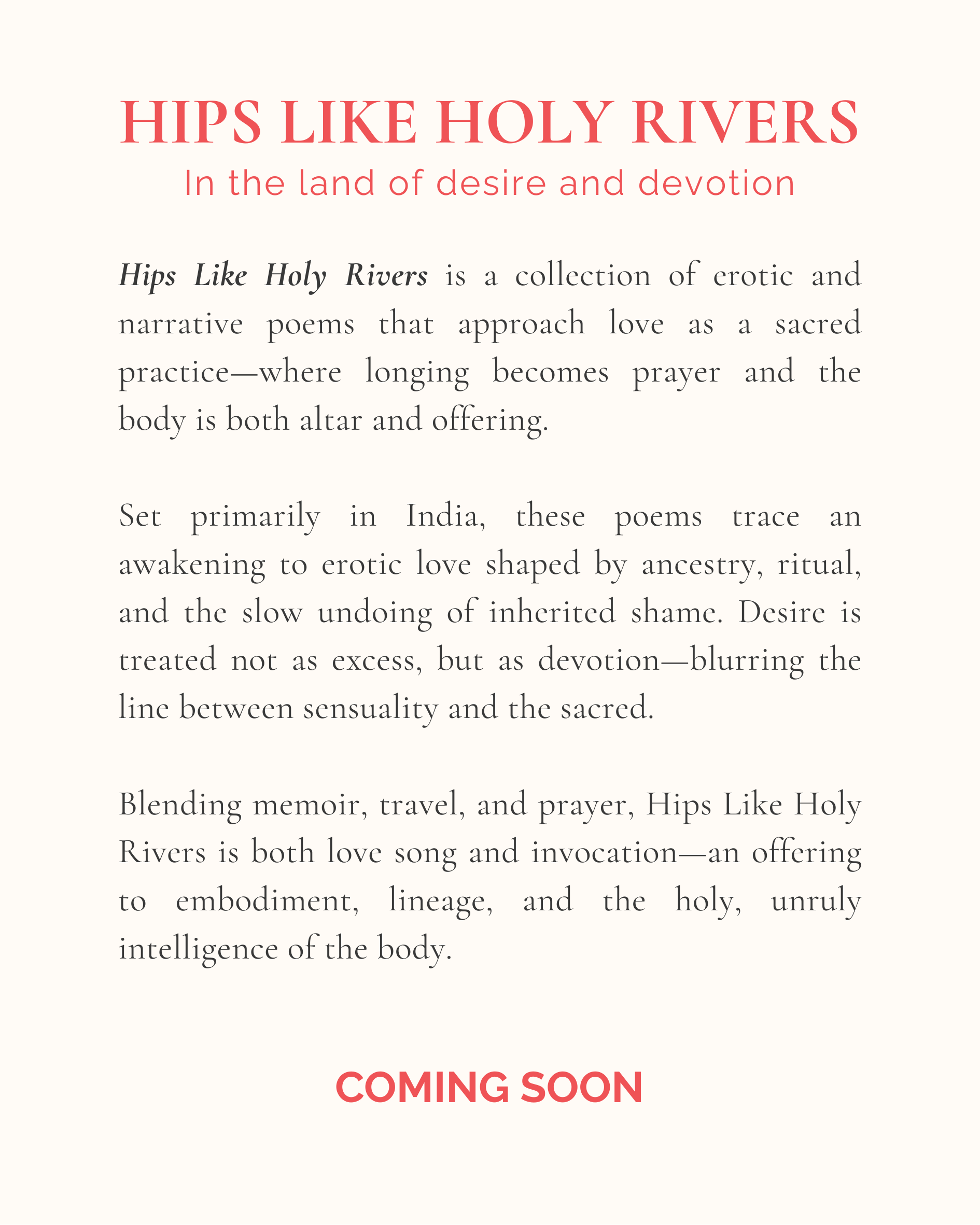 This piece marks a quiet turning point in my work. In Chennai, I held the first printed pages of Hips Like Holy Rivers and felt the weight of years of self-censorship begin to lift. What follows is a reflection on shame, inheritance, and the courage it takes to speak from the body—especially when silence once felt like safety.